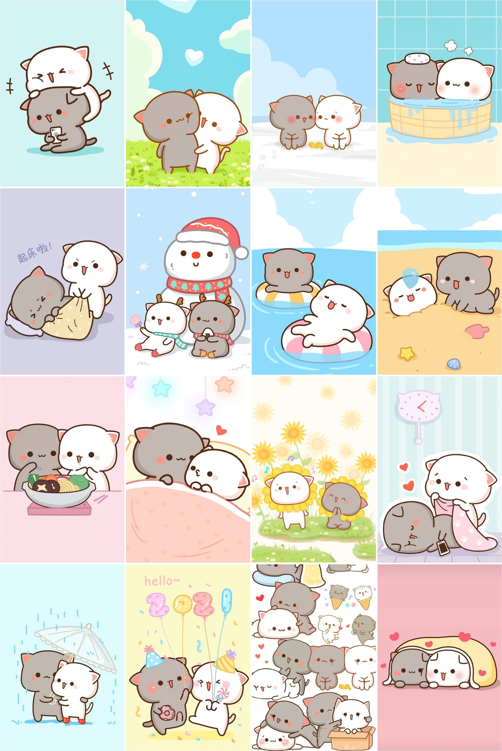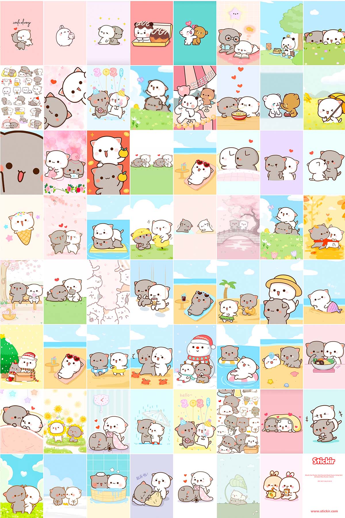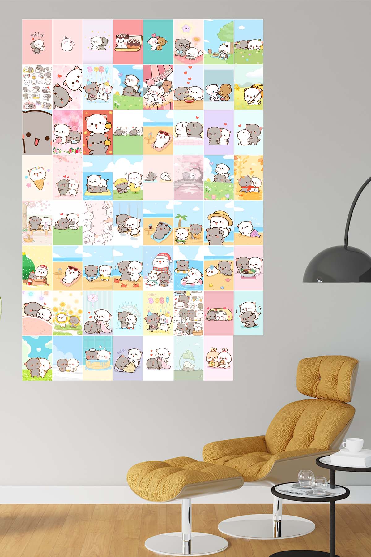Mochi Cat Poster Seti Sevimli Kedi Duvar Kolaj Seti 63 Adet Mini Poster 10×15