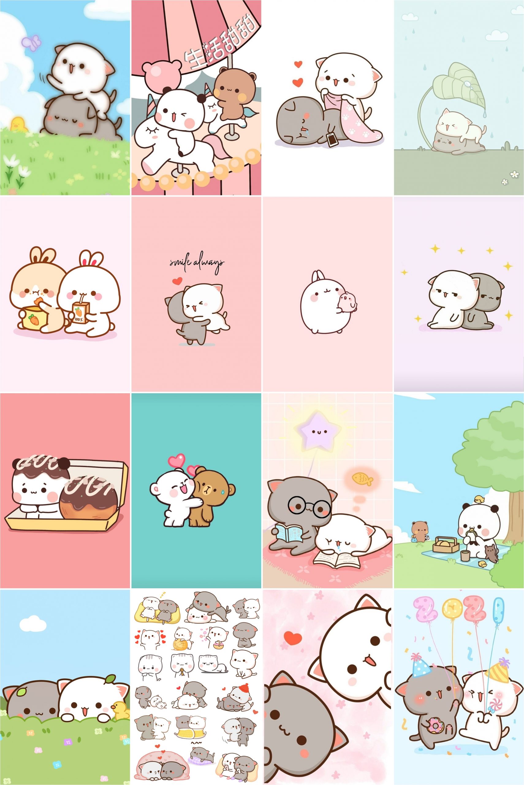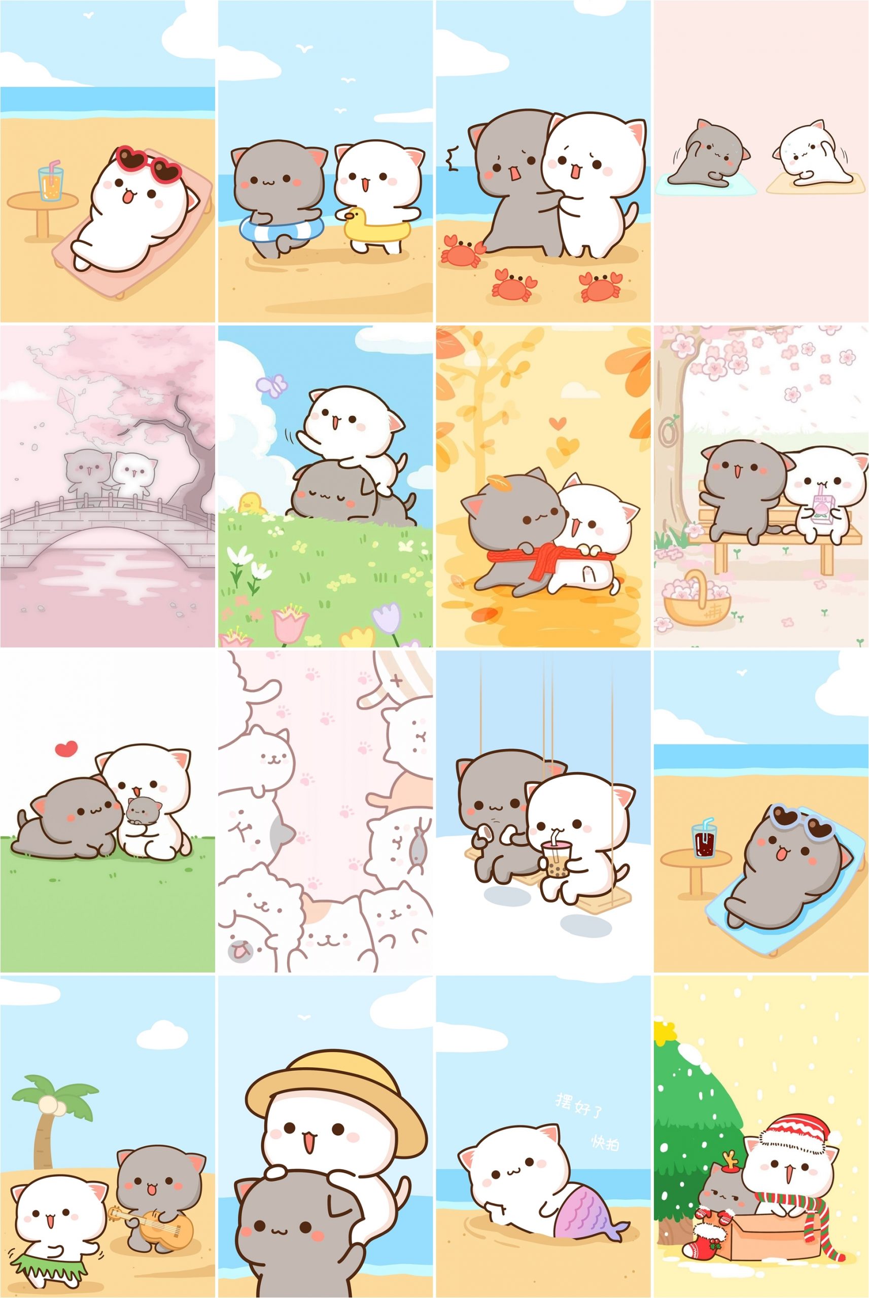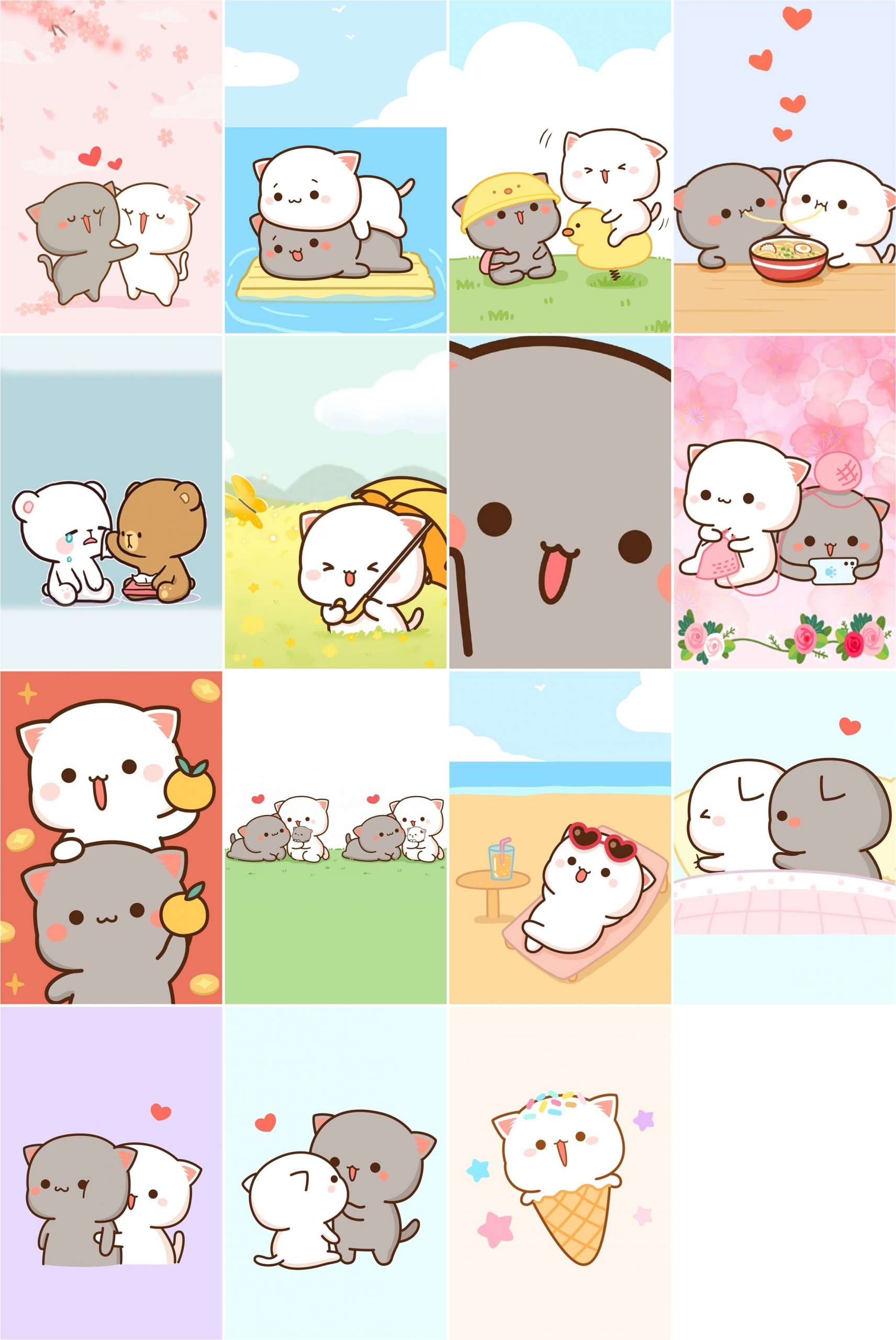 Mochi Cat Poster Seti Sevimli Kedi Duvar Kolaj Seti 63 Adet Mini Poster 10×15